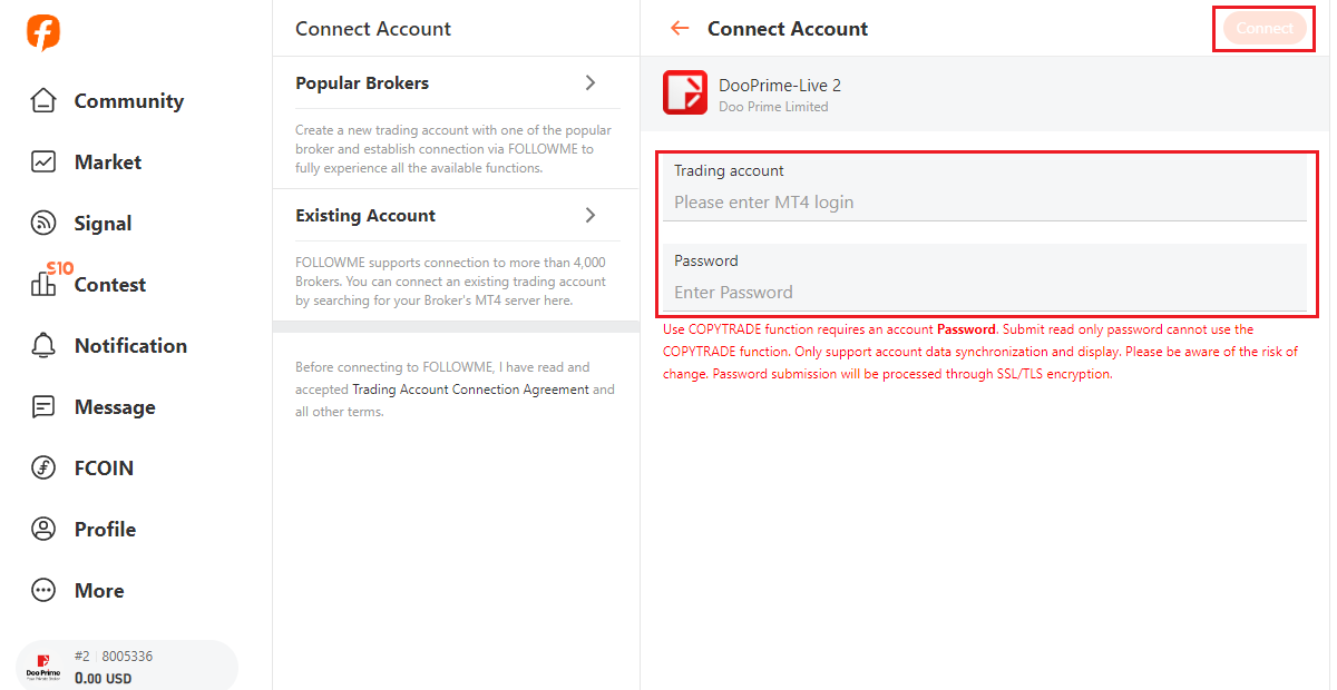 كيفية ربط حساب التداول D Prime عبر FOLLOWME؟