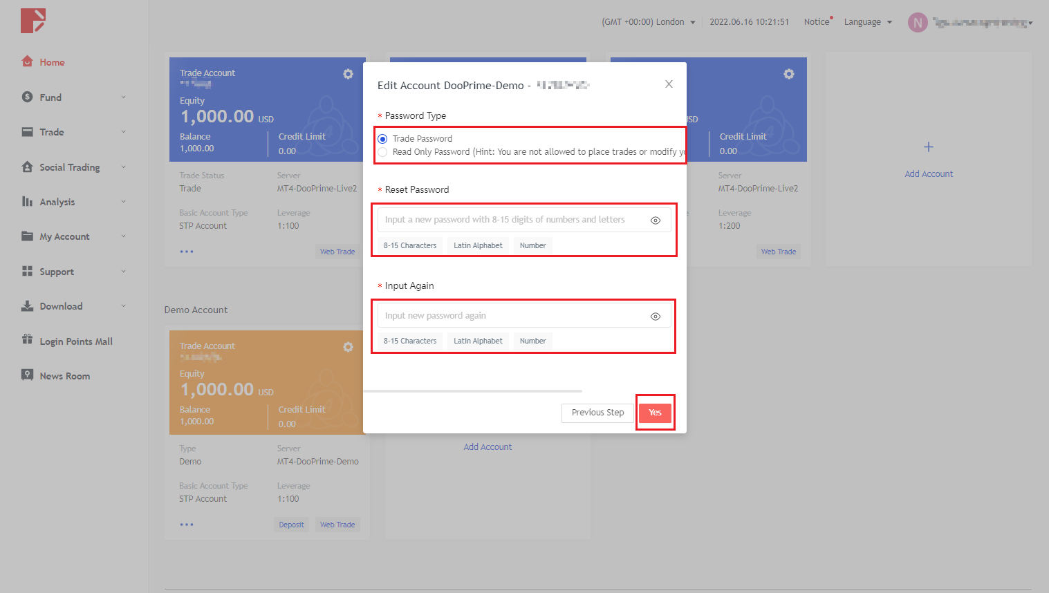 D Prime 사용자 센터에서 데모 계정 비밀번호를 잊어버린 경우 어떻게 해야 하나요?