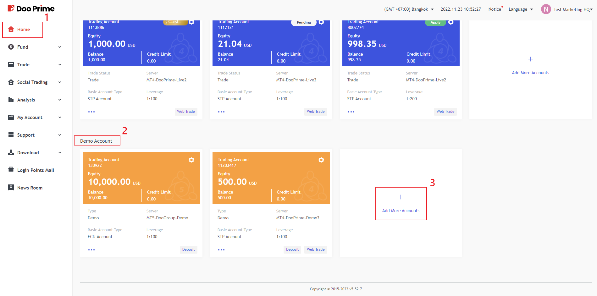 4. 그런 다음 D Prime 공식 웹사이트를 통해 데모 계정을 신청하는 위의 3단계를 참조하여 D Prime 사용자 센터에서 데모 계정을 추가하는 절차를 완료하고 데모 계정을 신청하세요.