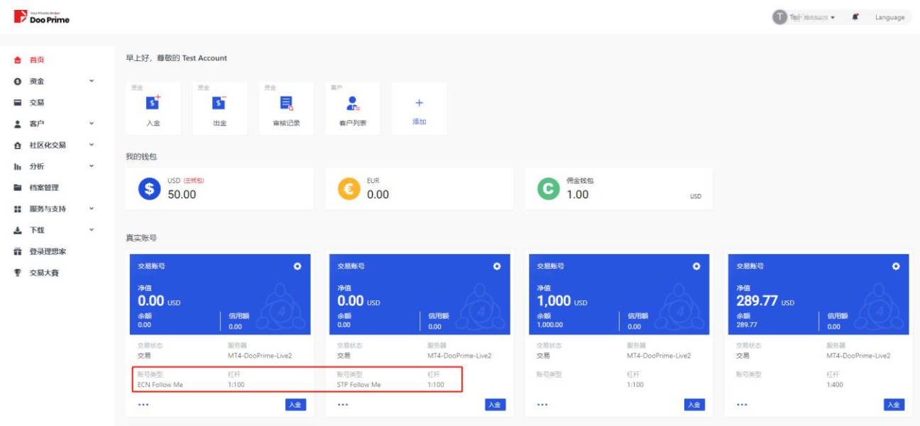 客戶登录 FOLLOWME 後,点击首页右侧「连接账户」,在连接交易账户页面中找到 D Prime。