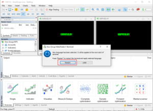 完成选择后会有弹窗提示用户重新启动 MT5 ,请点击【Restart】重新启动。