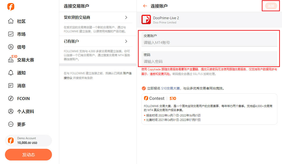 如何透過FOLLOWME 連接D Prime 交易帳戶?