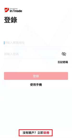 如您沒有D Prime 使用者中心的帳戶,請點選開啟應用程式— D Prime InTrade,於介面底部點選「註冊」。