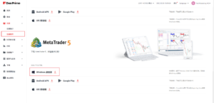 完成登錄後,可在左側菜單的【交易】下選擇【交易軟件】,然後在【MetaTrader 5】的圖標下選擇對應端口。