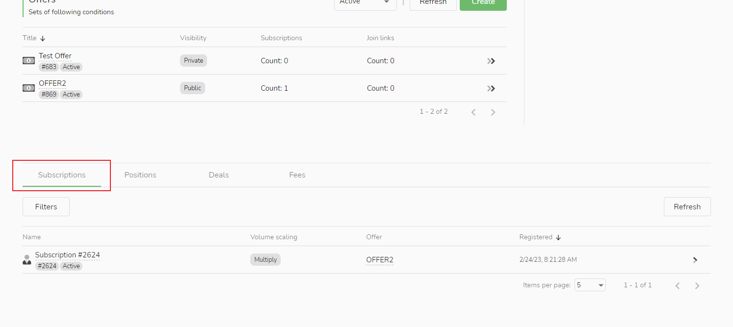Ở cuối trang thông tin nguồn tín hiệu và phân bổ đơn hàng, bạn có thể xem danh sách người theo dõi và bạn có thể chọn xóa người theo dõi bằng cách nhấp vào mũi tên ở bên phải của người theo dõi.