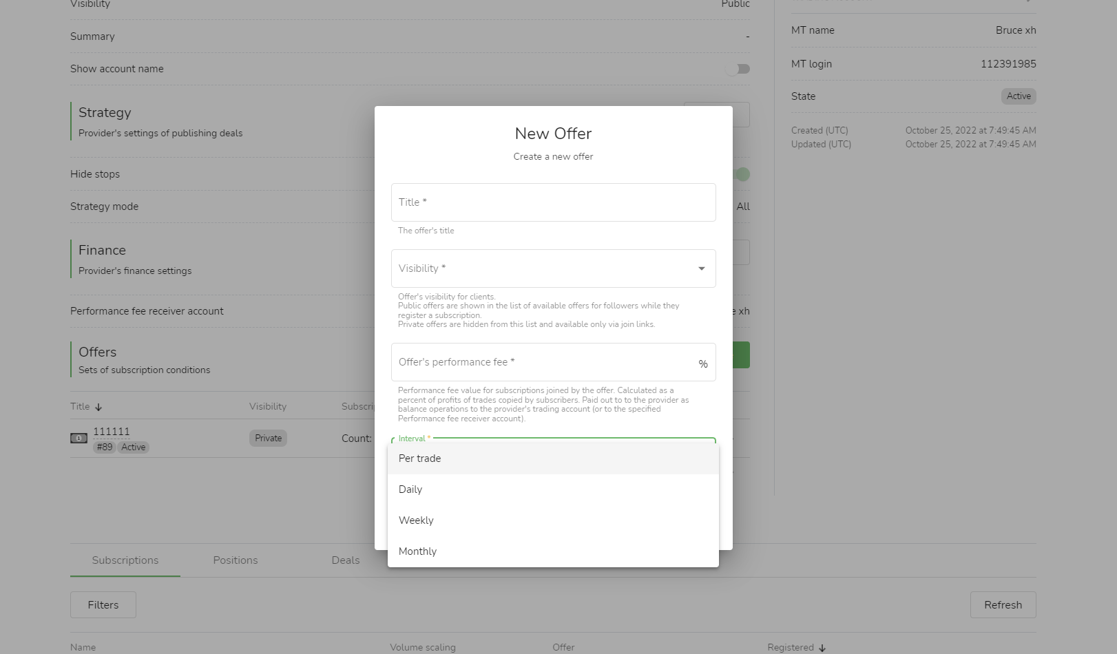 Khi một nguồn tín hiệu tạo ra một "điều kiện sao chép", nó có thể chọn tính phí hiệu suất cho mỗi giao dịch, hàng ngày, hàng tuần hoặc hàng tháng.
