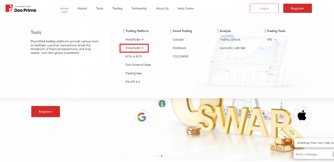Chọn [MetaTrader 5] trong thanh [Công cụ]: